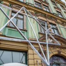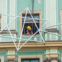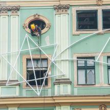 In his work, Czerepok combines the two meaningful symbols into a single object that transforms itself from one into another. Placing it on the façade of the Oppenheim House whose past reflects the tragic history of the Wrocław Jews emphasises the inextricable and tension-filled relationship between Christianity and Judaism. One must not forget that this positively loaded hexagram is also the yellow Star of David – a symbol of the Holocaust.