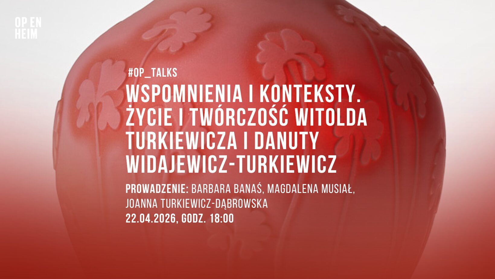 W dyskusji udział wezmą: Barbara Banaś – historyczka sztuki i badaczka polskiego wzornictwa, Magdalena Musiał – historyczka sztuki i dyrektorka OP ENHEIM, oraz Joanna Turkiewicz-Dąbrowska – córka Witolda i Danuty Turkiewiczów, artystka.