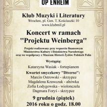 Serdecznie zapraszamy na Koncert w ramach „Projektu Weinberga”, który się odbędzie 9 grudnia 2016 r. w Klubie Muzyki i Literatury o godzinie 18.