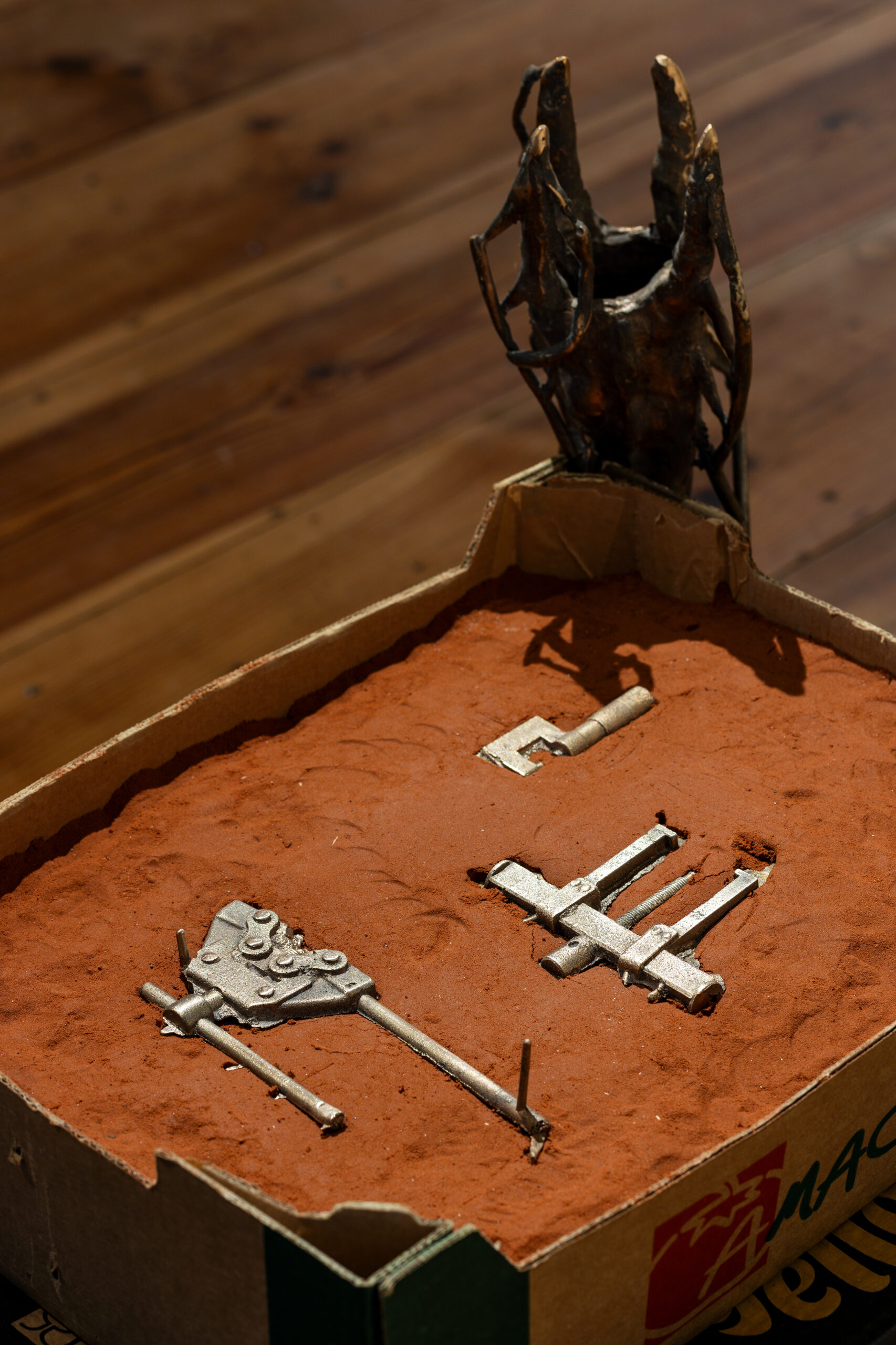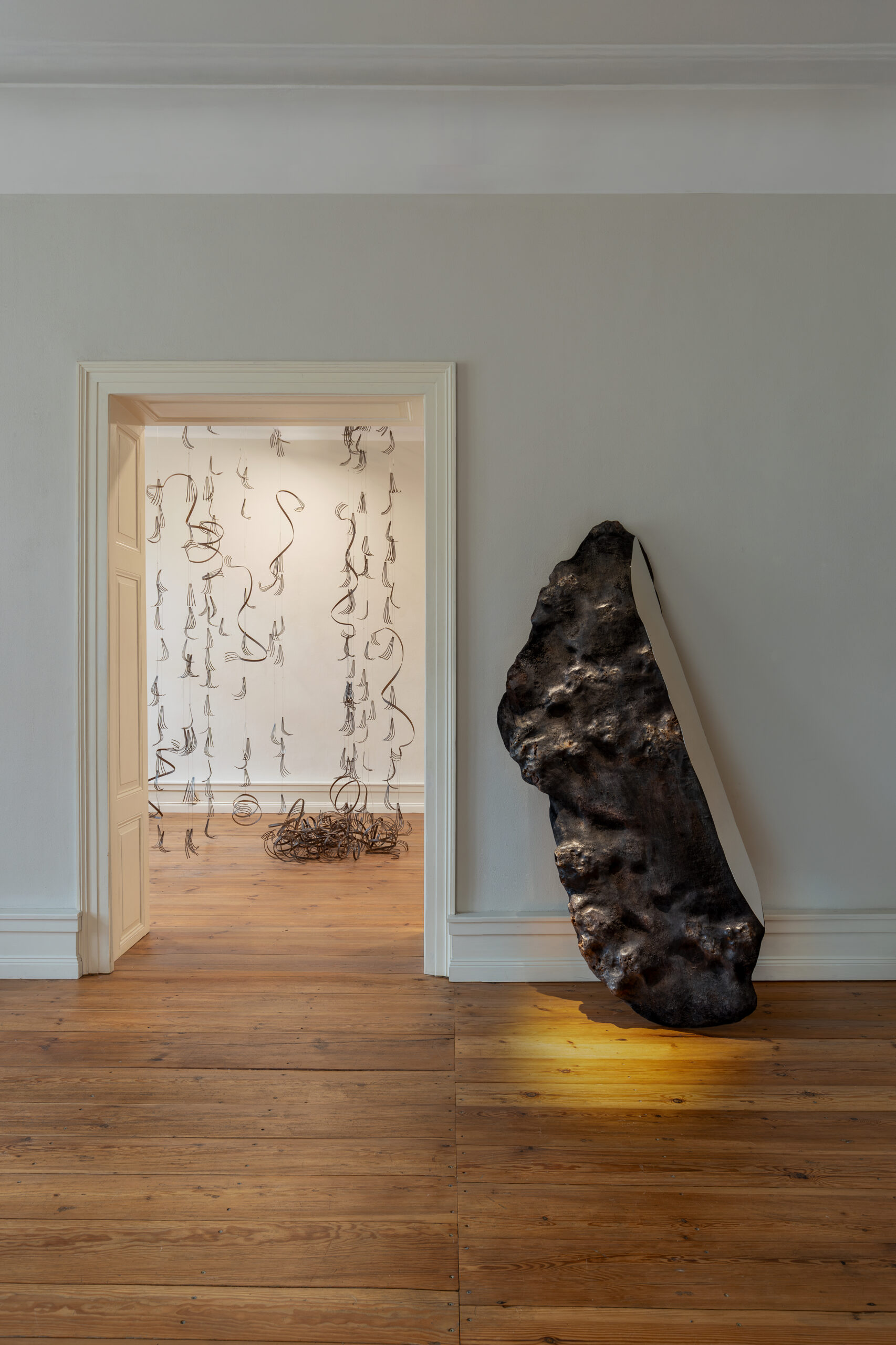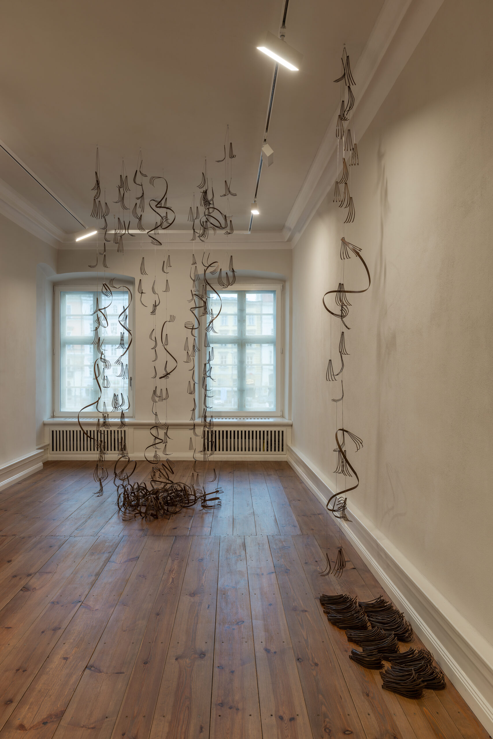 W kontekście wiedzy schowanej w ciele, która nie podaje się uchwyceniu, pojawiające się w tytule ukryte parametry czynią z obiektów prezentowanych na wystawie, zbiór form przypominających porzucone pancerze, układy kostne czy wylinki. Zbudowane w ten sposób archiwum procesu ich powstawania/wytwarzania, okazuje się być nie tylko zapisem indywidualnych sposobów pracy, ale też instrukcją prowadzenia badań, która zachęca do rozchwiewania sztywnych systemów porządkowania danych, rozcieńczania założeń wyjściowych, podążania za materią.